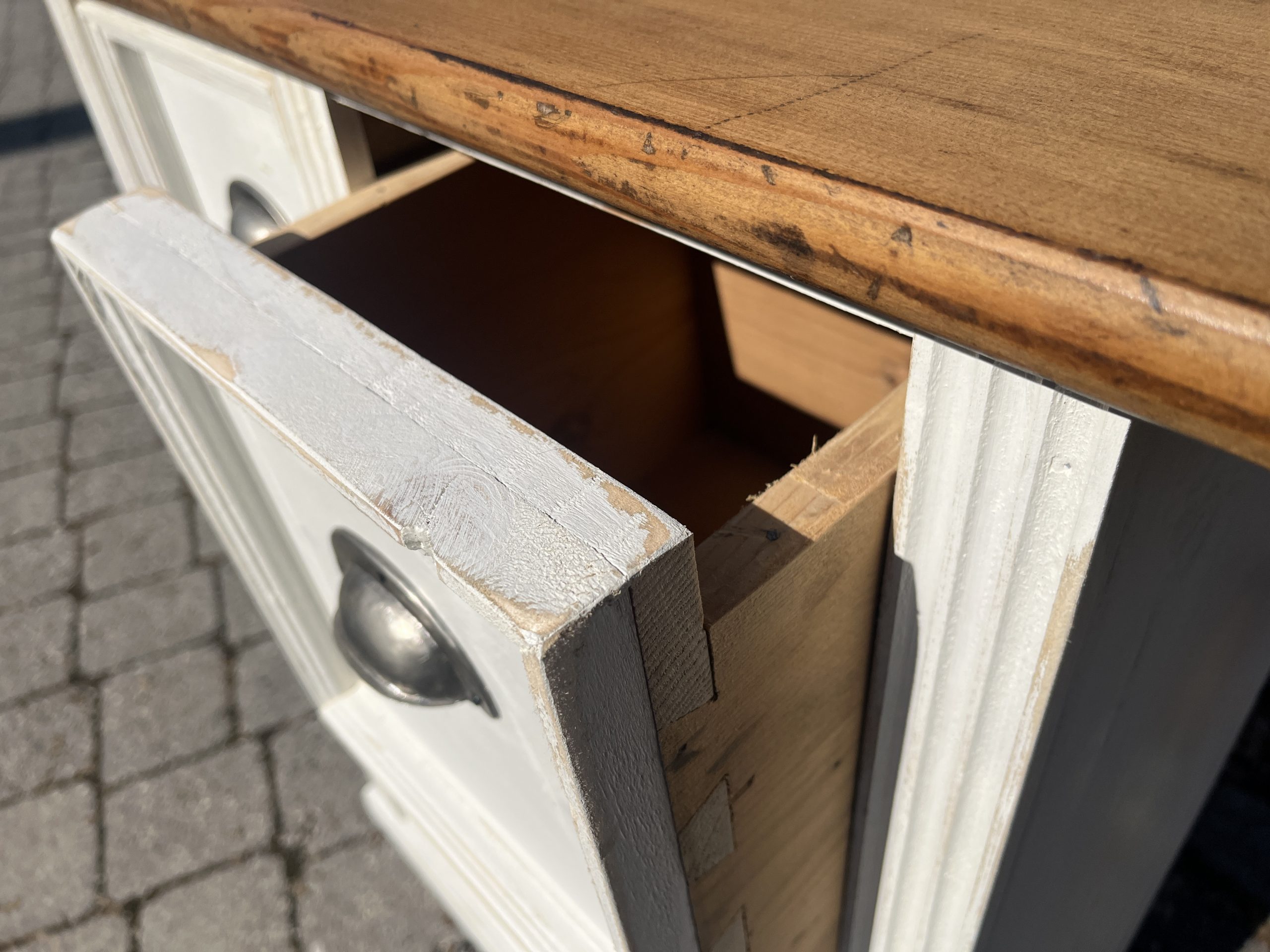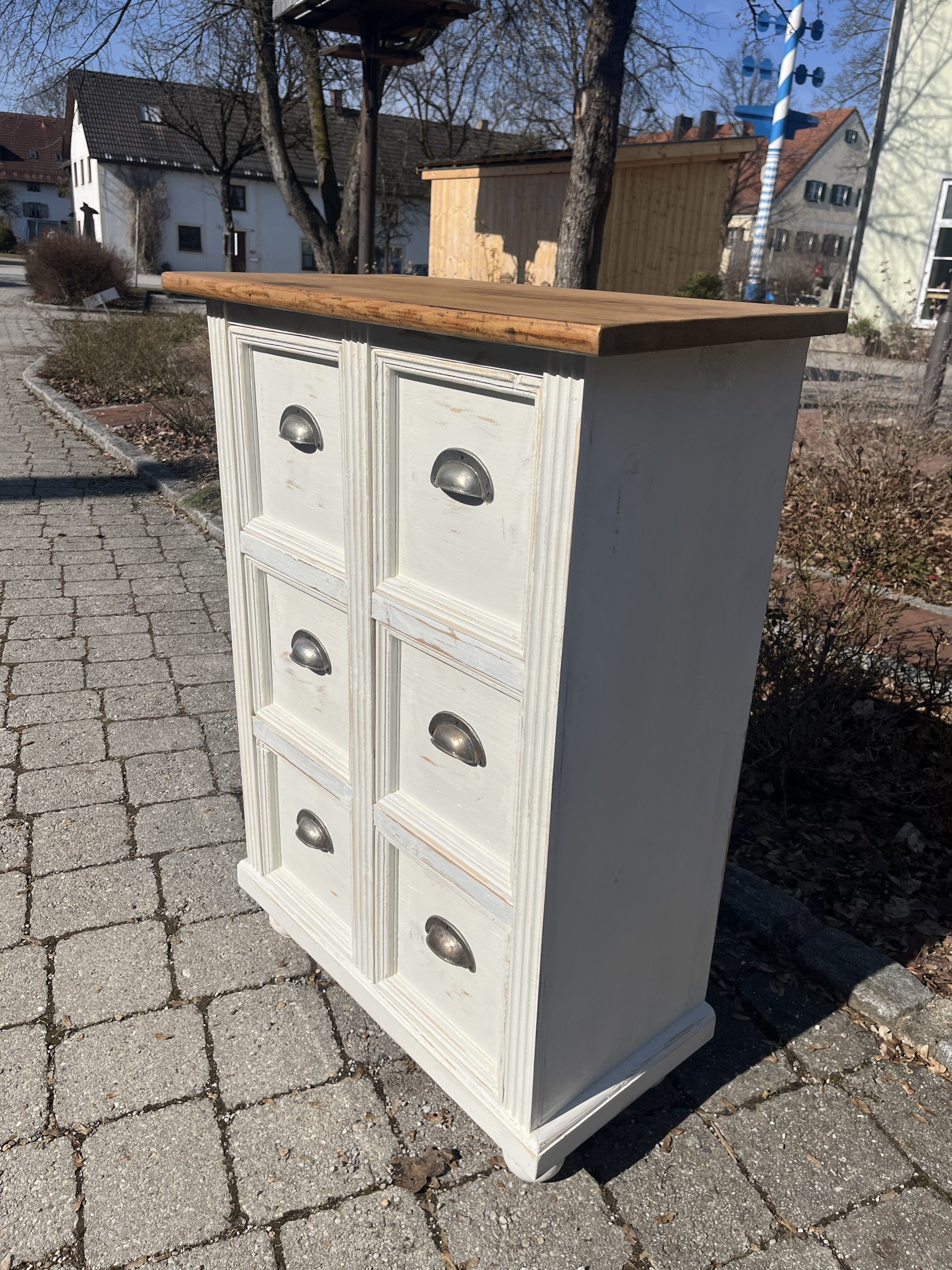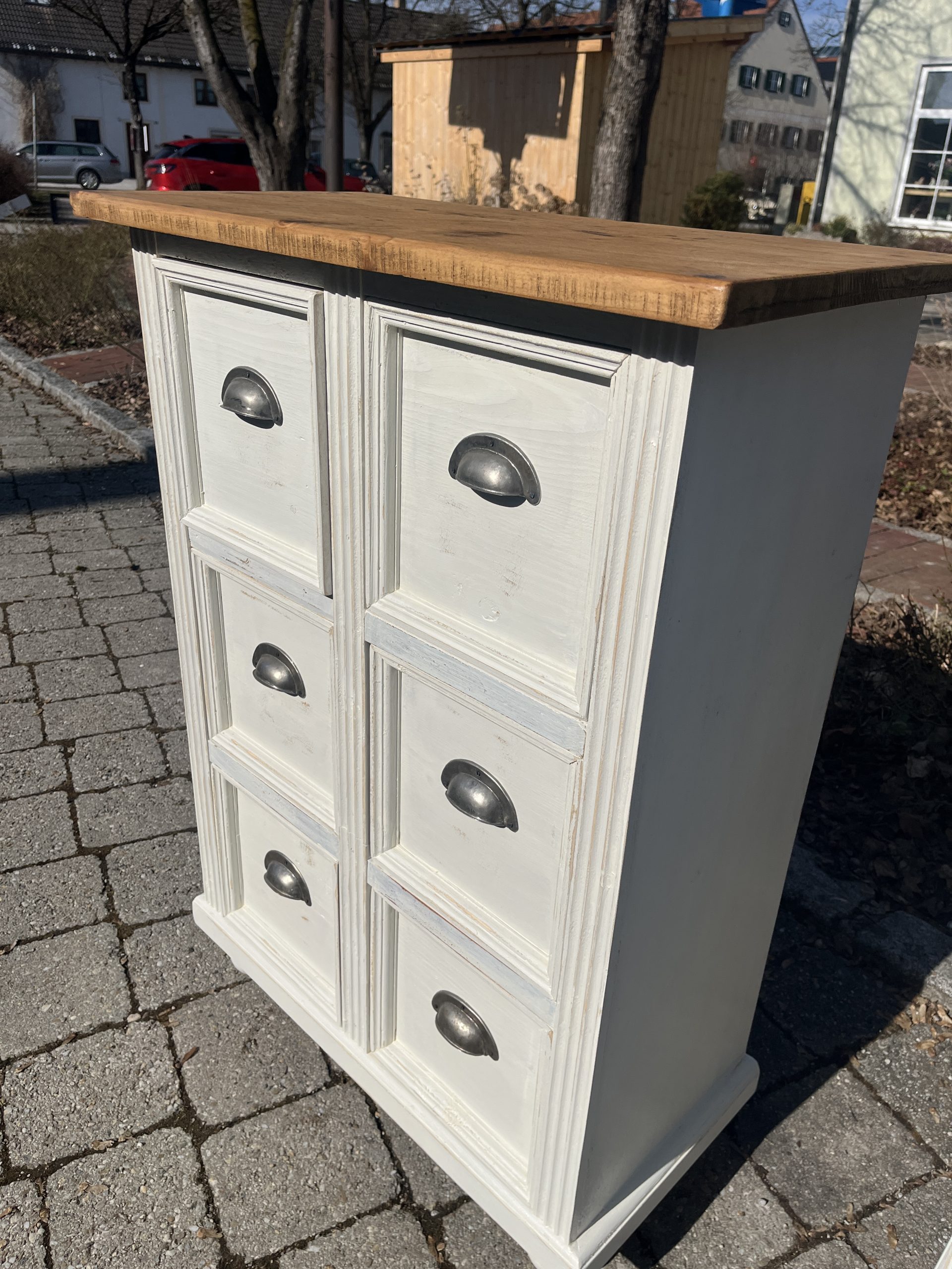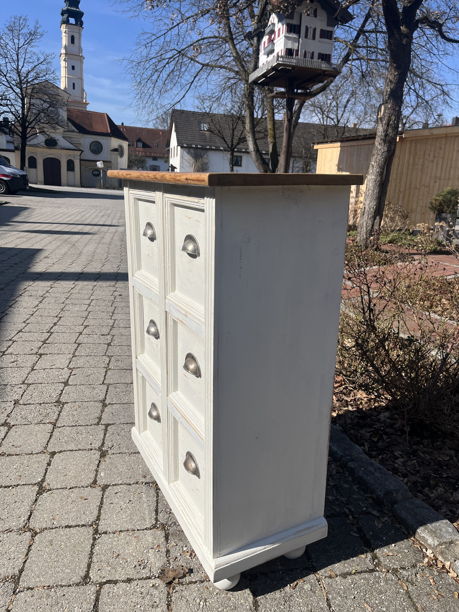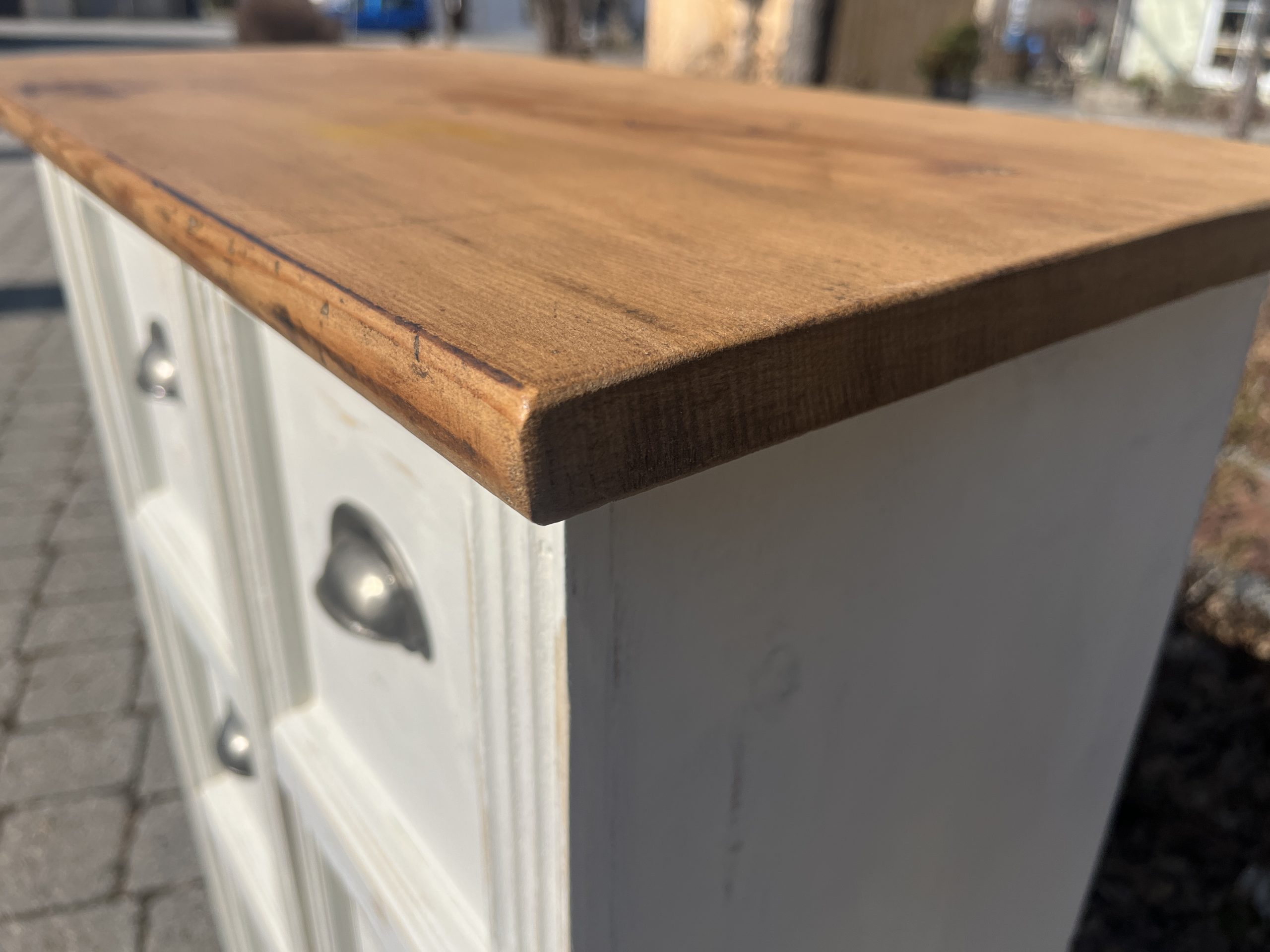 – in schönem Weiss gefasst, aktuell noch kein Shappyfinish/ auf Wunsch können die Kanten leicht geschliffen werden für den schönen Usedlook