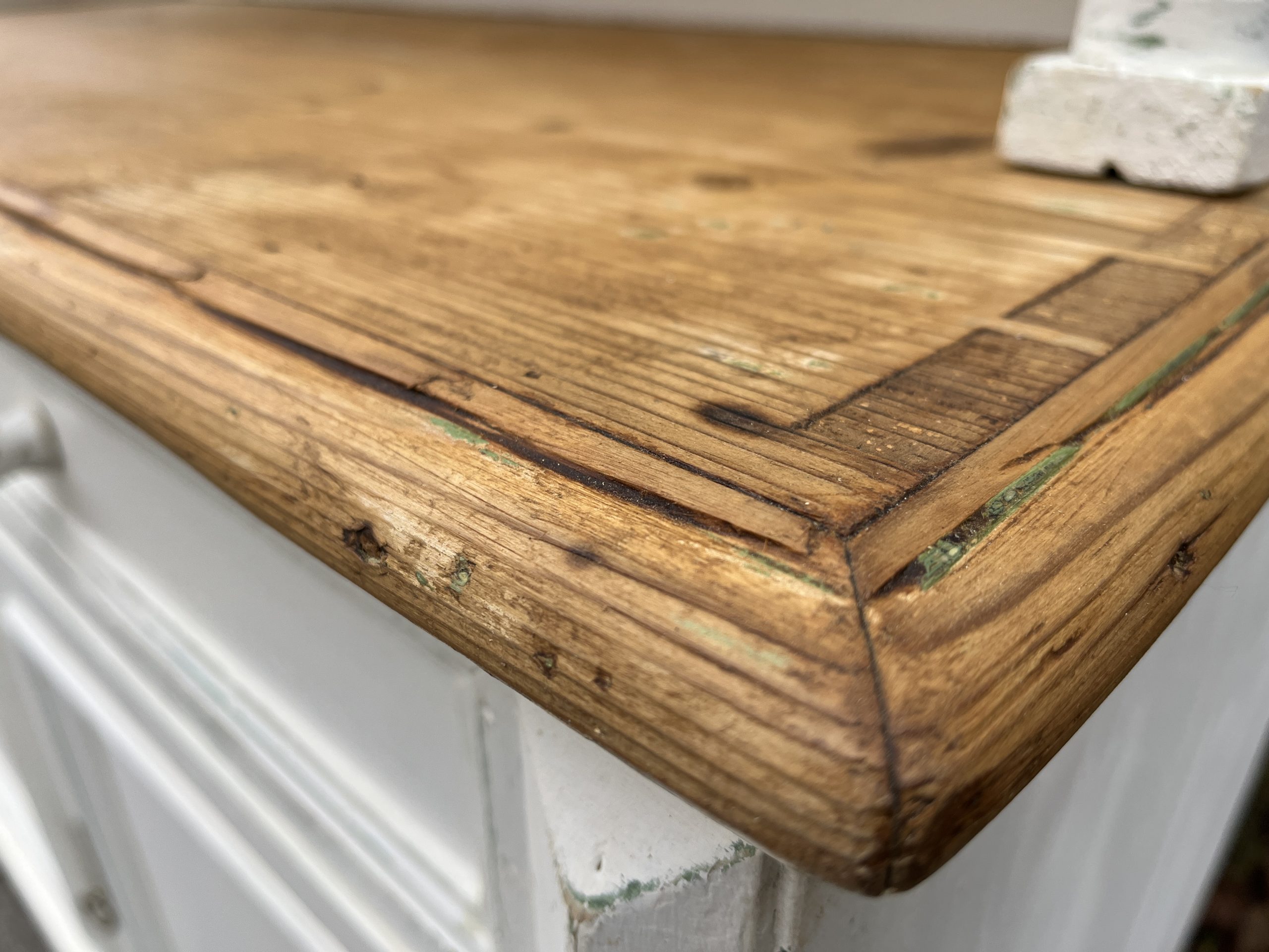 – hier und da schimmert die alte grüne Originalfarbe durch, was den authentischen Charakter unterstützt